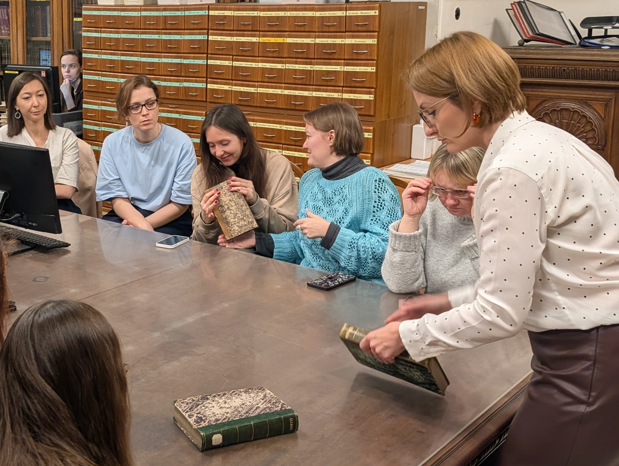 Для участников дневного модуля проводились экскурсии по Научной библиотеке ГМИИ и практические занятия по идентификации видов капталов и техник декоративного оформления книжных обрезов.
