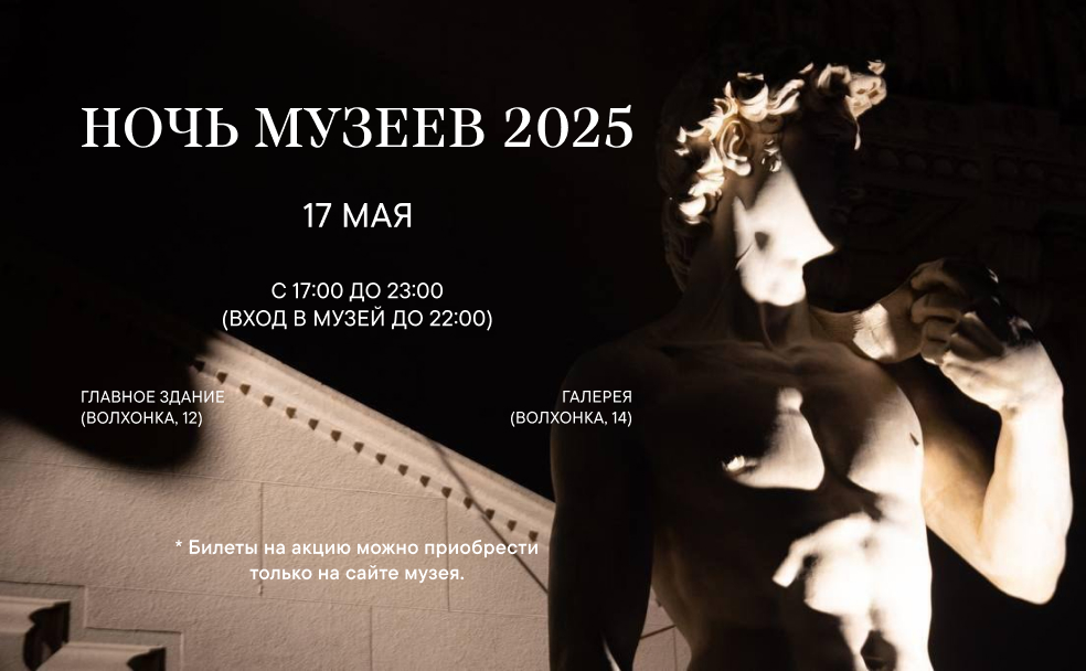 ГМИИ им. А.С. Пушкина примет участие в акции «Ночь музеев» 17 мая. Входные билеты в музей на время проведения акции будут продаваться по специальной цене: 100 рублей — посещение постоянной экспозиции, 250 рублей — проход в постоянную экспозицию и на выставки. Продажа билетов откроется 7 мая в 12:00. Их можно будет приобрести на сайте — выбирайте тег «Ночь музеев».