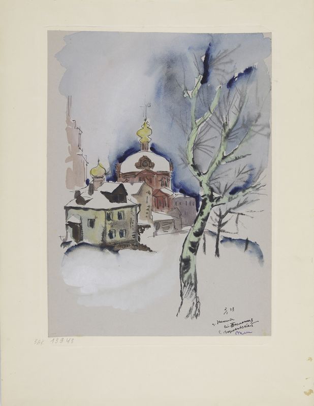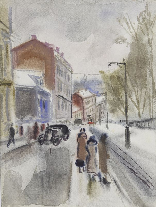 Маврина-Лебедева Т.А. Улица Москвы На обороте – зимний пейзаж. Акварель. 435х324