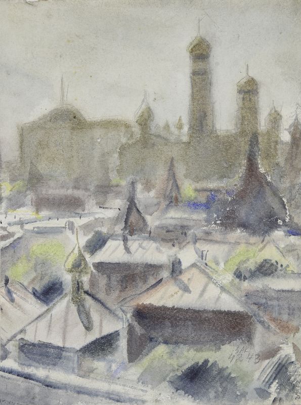 Маврина-Лебедева Т.А. Москва. Пейзаж с облаками. 1938. Акварель. 320х365