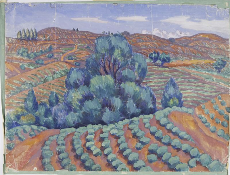 Крамаренко Л.Ю. Чайная плантация в Чакве. 1926. Бумага, гуашь. 530х709
