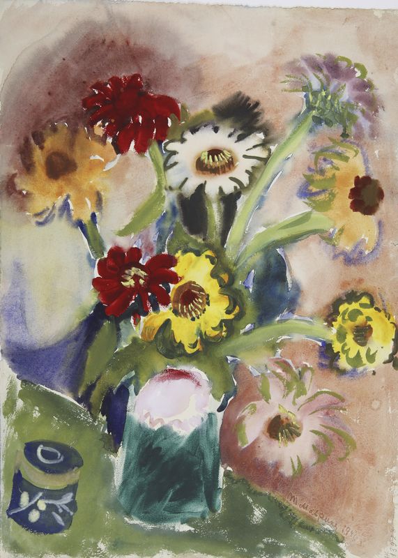 Маврина-Лебедева Т.А. Цветы в голубой вазе. 1938. Гуашь. 378х320