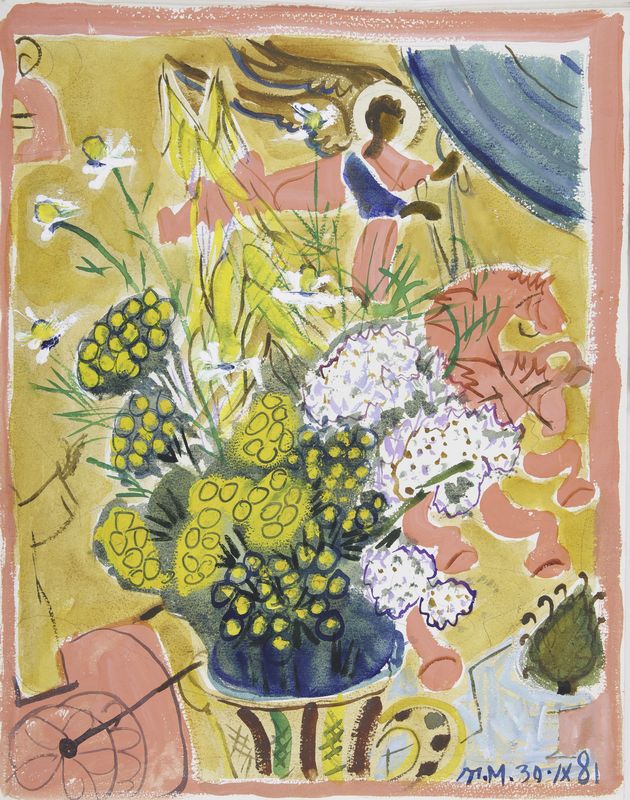 Маврина-Лебедева Т.А. Букет с ангелом. 1981. Гуашь. 480х380