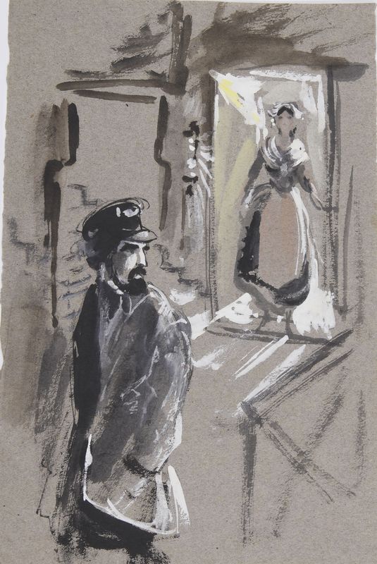 Щербаков А. Иллюстрация к Амичису (?). Акварель, тушь. 276х224
