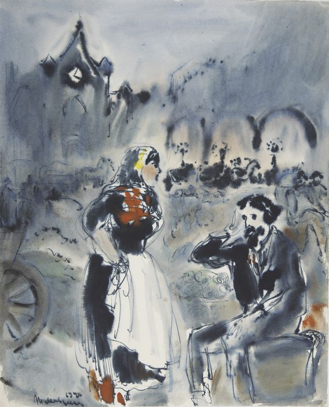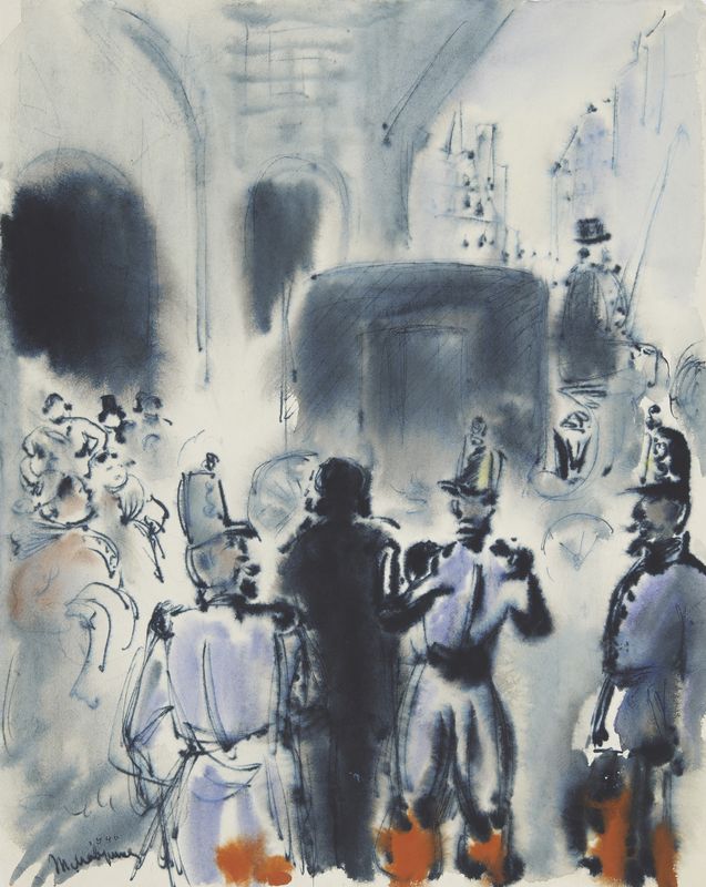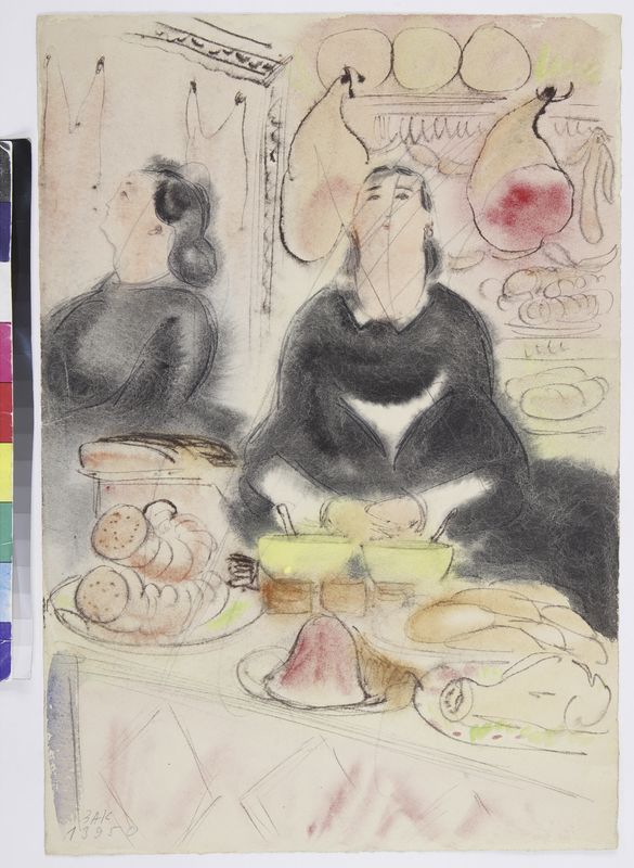Маврина-Лебедева Т.А. Эмиль Золя «Чрево Парижа». Иллюстрация. 1940. Акварель, гуашь. 320х258
