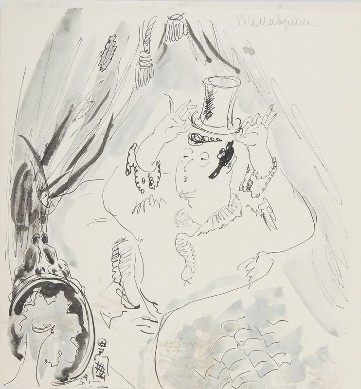 Маврина Т.А. Гофман Э.Т.А. Иллюстрация (Кот Мур). 1930-е. Тушь, перо, кисть. 300х221