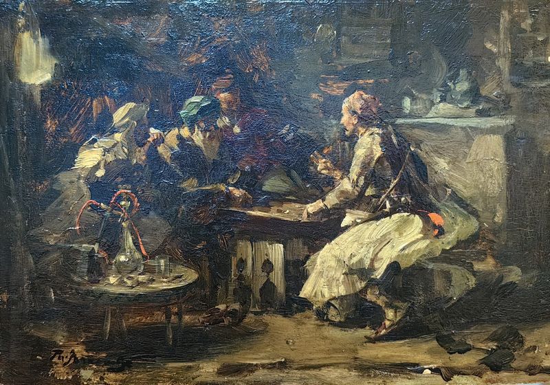 Неизвестный художник 2-й пол. XIX века. Восточная сцена. Дерево, масло. 16,15х23,25