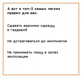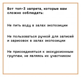 Пожалуйста, заранее готовьтесь к визиту, изучайте правила посещения, с понимаем относитесь к просьбам сотрудников соблюдать правила. Будьте бережны к музею и друг к другу.