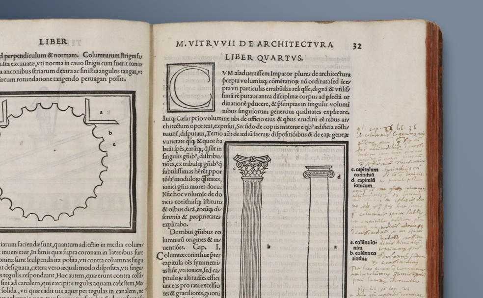 • Главным результатом исследовательского проекта, проводившегося в 2020–2024 годах, стало определение автора записей и рисунков на полях книги, что утвердило за экспонатом статус уникального памятника эпохи Возрождения. Эксперты установили, что записи принадлежат выдающемуся ученому XVI века — венецианскому гуманисту Даниэле Барбаро. Он был послом Венецианской республики на Британских островах, избранным патриархом Аквилеи, а его портреты писали Тициан и Веронезе. Записи на полях московского экземпляра служили для Даниэле Барбаро черновиком при подготовке комментированного издания «Десяти книг об архитектуре» Витрувия, которое считается одним из ключевых трудов по архитектуре, созданных в эпоху Возрождения.