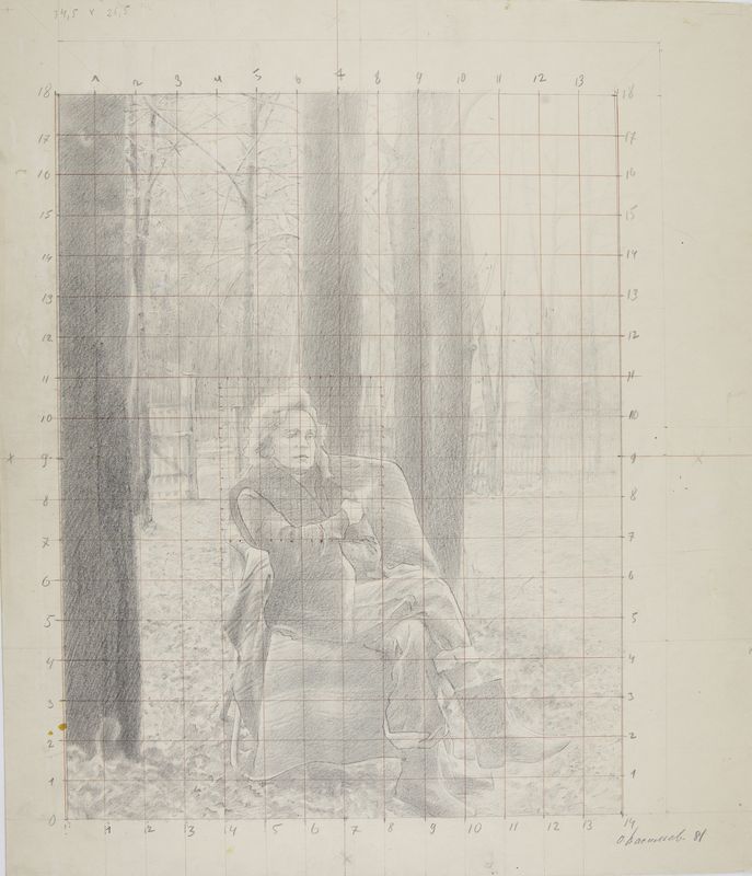 Васильев О. Сидящий мужчина. 1981. Карандаш. 423х360