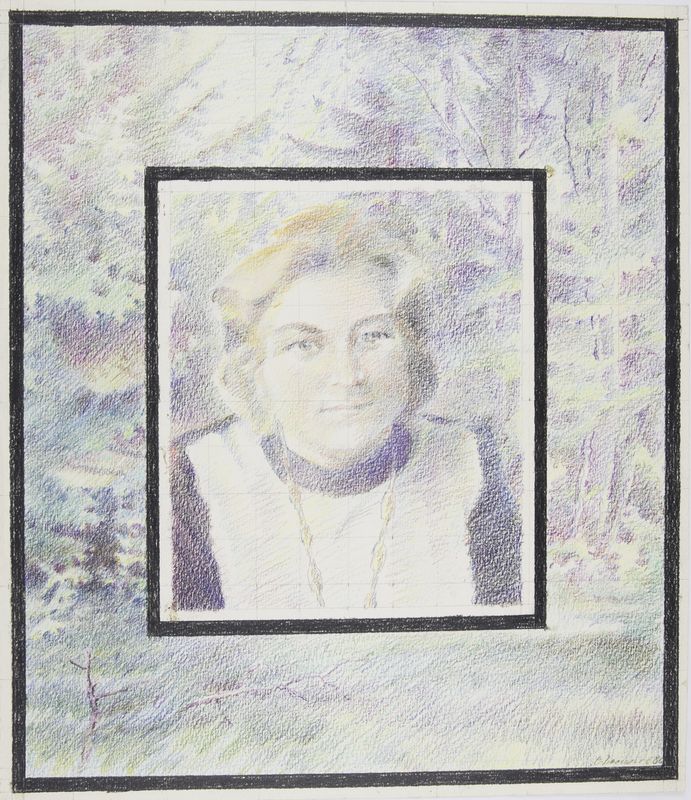 Васильев О. Женский портрет. 1980 (?). Цветной карандаш. 392х339