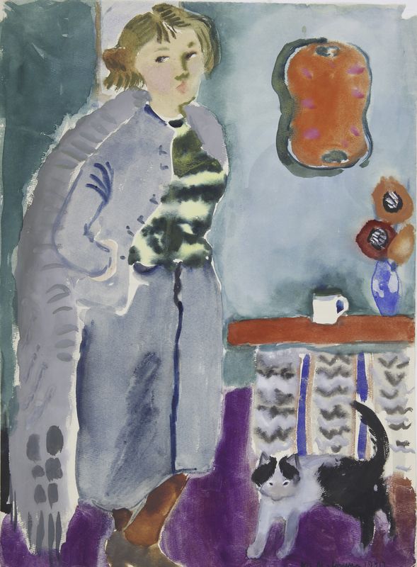 Маврина-Лебедева Т.А. Автопортрет с кошкой. 1940. Акварель. 437х320