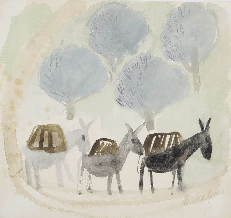 Маврина-Лебедева Т.А. Ослики. 1991. Акварель, карандаш. 292х304