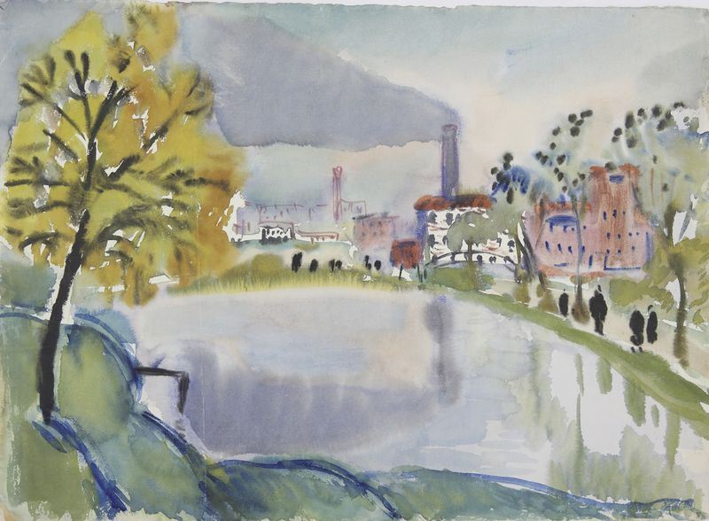 Маврина-Лебедева Т.А. Пруд в Петровском-Разумовском. 1937. Акварель. 327х375