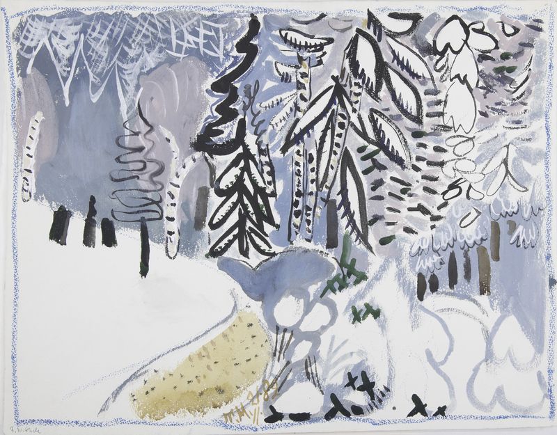 Маврина-Лебедева Т.А. Зимний пейзаж 1982. Гуашь 378х483
