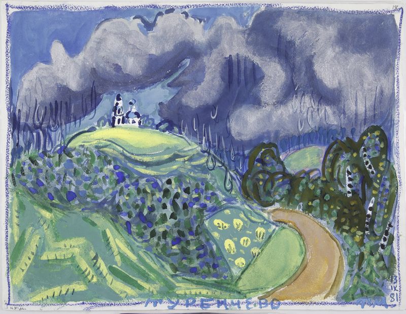 Маврина-Лебедева Т.А. Летний пейзаж с церковью. 1981. Гуашь. 377х495