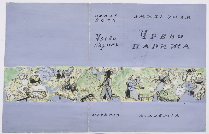 Маврина-Лебедева Т.А. Суперобложка для романа Э. Золя «Чрево Парижа» (суперобложка). 1936. Тушь, белила, акварель. 240х375