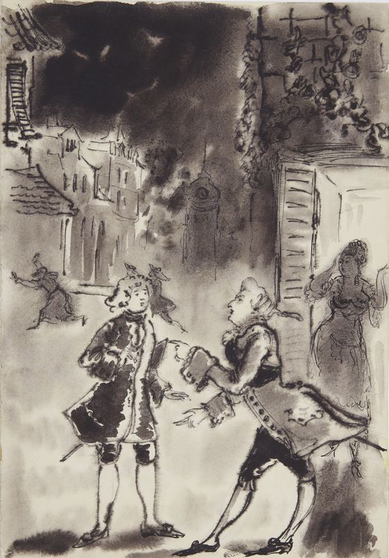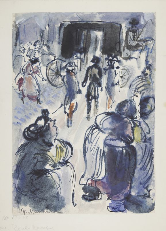 Маврина-Лебедева Т.А. Эмиль Золя «Чрево Парижа». Иллюстрация. 1940. Гуашь, акварель. 302х217