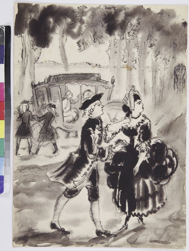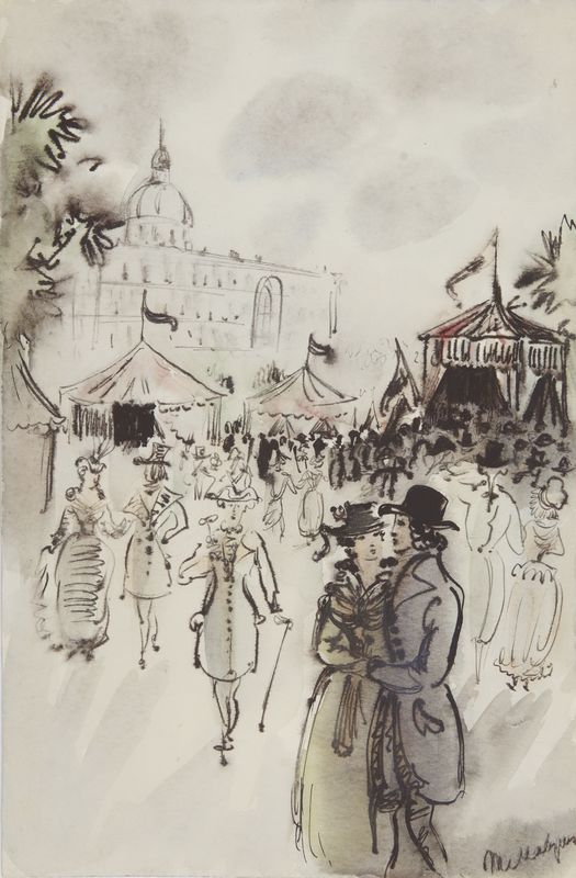 Маврина-Лебедева Т.А. Эмиль Золя «Чрево Парижа». Иллюстрация. 1940. Акварель, гуашь. 320х258