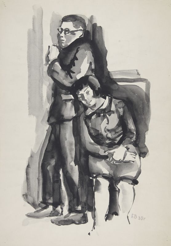 Винокуров Б. Вдвоем. 1930. Акварель, кисть. 505х360