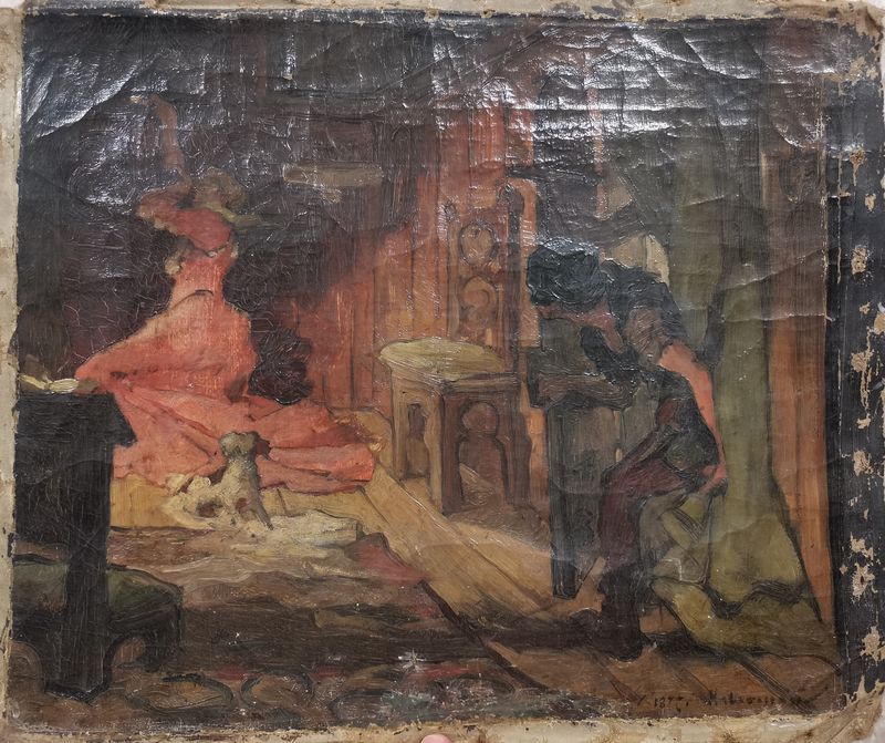 Неизвестный художник 2-й пол. XIX века. Восточная сцена. Дерево, масло. 16,15х23,25