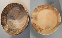 В ГМИИ им. А.С. Пушкина впервые после сложной реставрации выставляется халафская чаша с двумя рядами ромбов с точками внутри, символизирующими засеянные поля. Этот сосуд – просьба древних жителей Ярым-Тепе о плодородии. Подробная статья о реставрации чаши на сайте Отдела реставрации и консервации музея.
