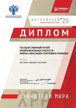 Подведены итоги международного фестиваля «Интермузей-2020». Проект отдела реставрации Пушкинского музея — выставка «Дважды спасенные» — награжден специальным дипломом Министерства культуры.