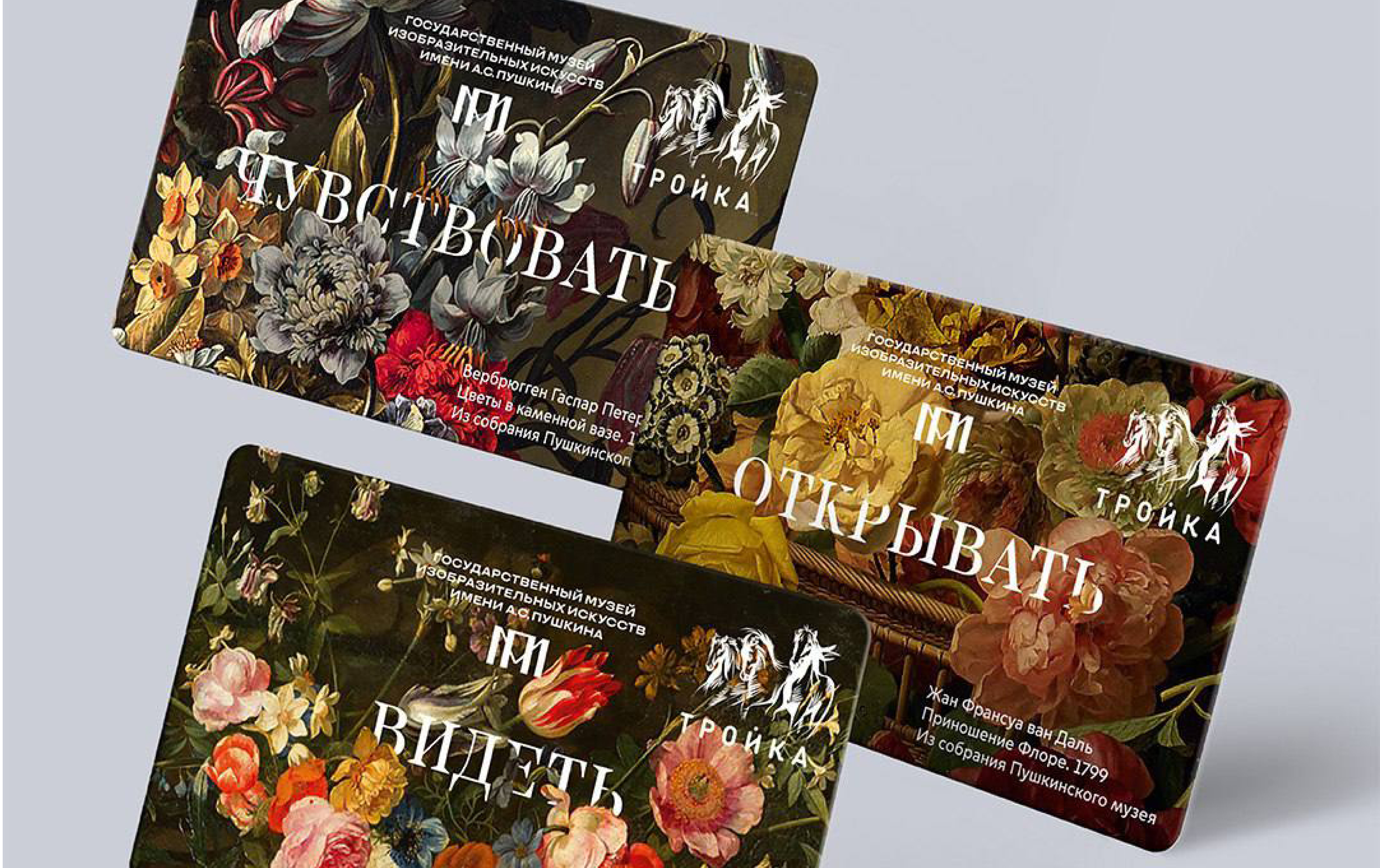 Пушкинский музей совместно с Департаментом транспорта города Москвы выпустили тематическую серию карт «Тройка» под названием «Видеть. Чувствовать. Открывать». Тема серии — пышные цветы как символ уходящего лета и аллегория быстротечности жизни.