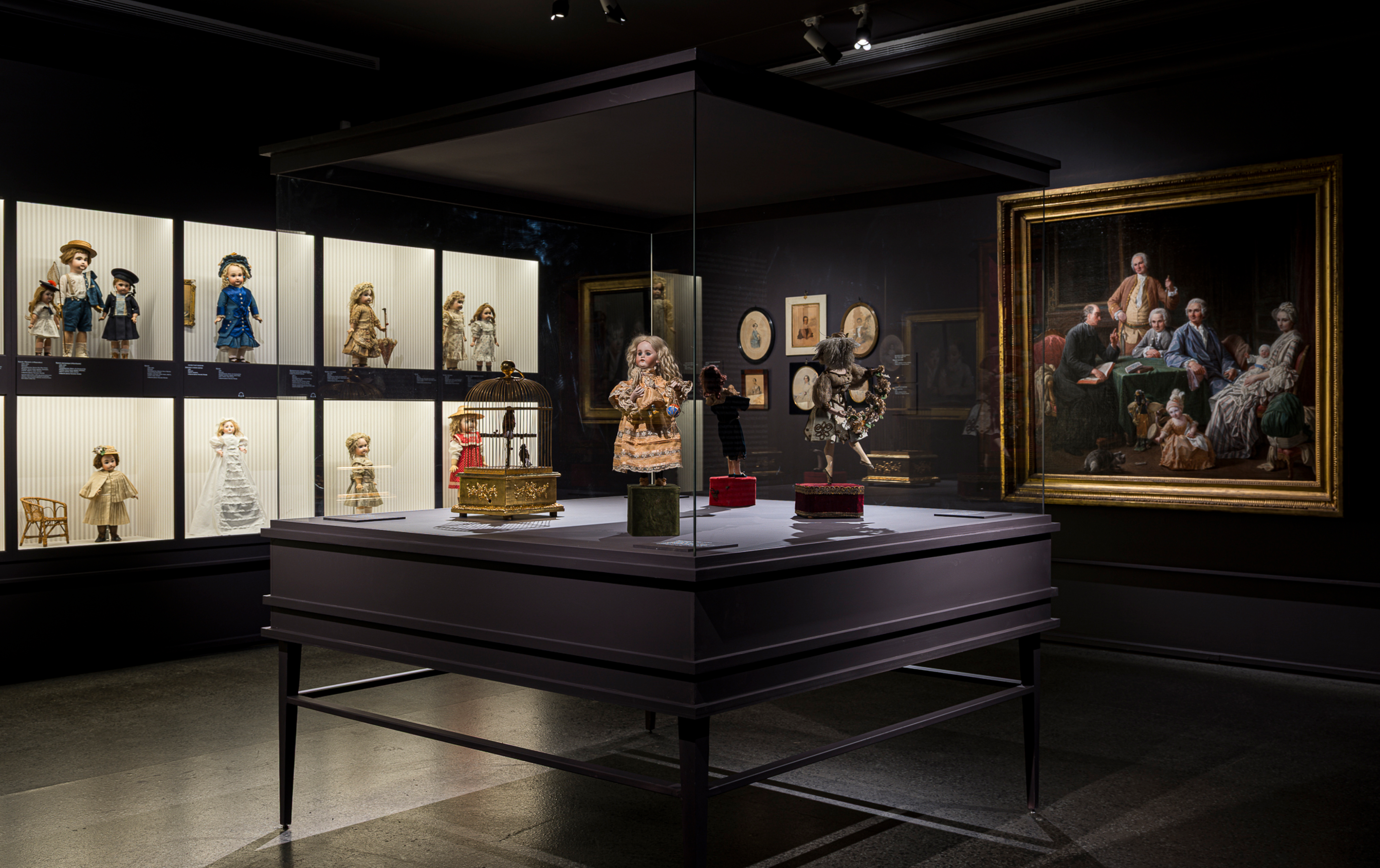Выставка включает редкие детские вещи и игрушки с более чем вековой историей. Среди экспонатов — художественные куклы из воска и фарфора; куклы в костюмах народов Российской империи и в бретонских национальных костюмах; миниатюрная мебель и сервизы; детская железная дорога начала ХХ века; автоматоны и механические игрушки. Впервые демонстрируются игрушечные французские бульдоги в натуральную величину с подвижной головой из папье-маше.