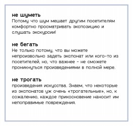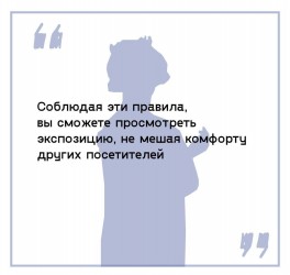 Пожалуйста, заранее готовьтесь к визиту, изучайте правила посещения, с понимаем относитесь к просьбам сотрудников соблюдать правила. Будьте бережны к музею и друг к другу.